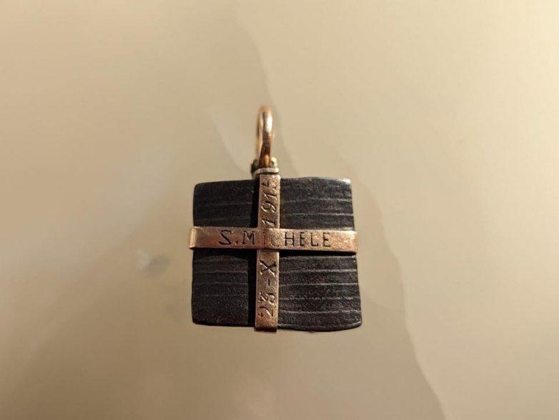 Шрапнель от артиллерийского снаряда, которую впоследствии превратили в кулон, 1915 год