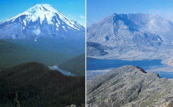 Стратовулкан Сент-Хеленс до и после извержения в 1980 году