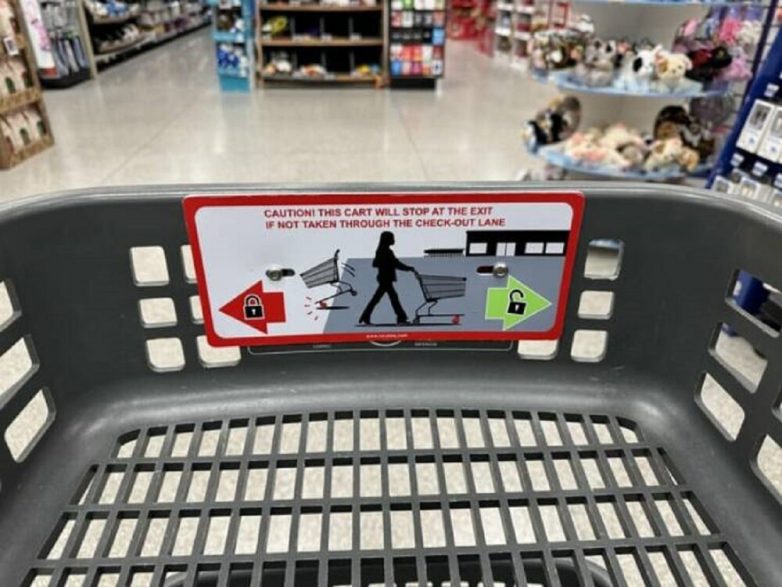 40. В этой тележке есть датчик, который не позволит ей проехать мимо кассы