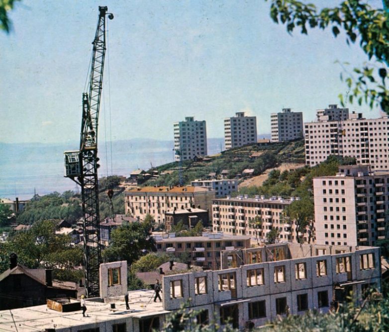 Владивосток. Строительство дома №3 на проспекте Острякова. Издательство «Советская Россия», Москва, 1974 год. Автор фото: Юрий Муравин.