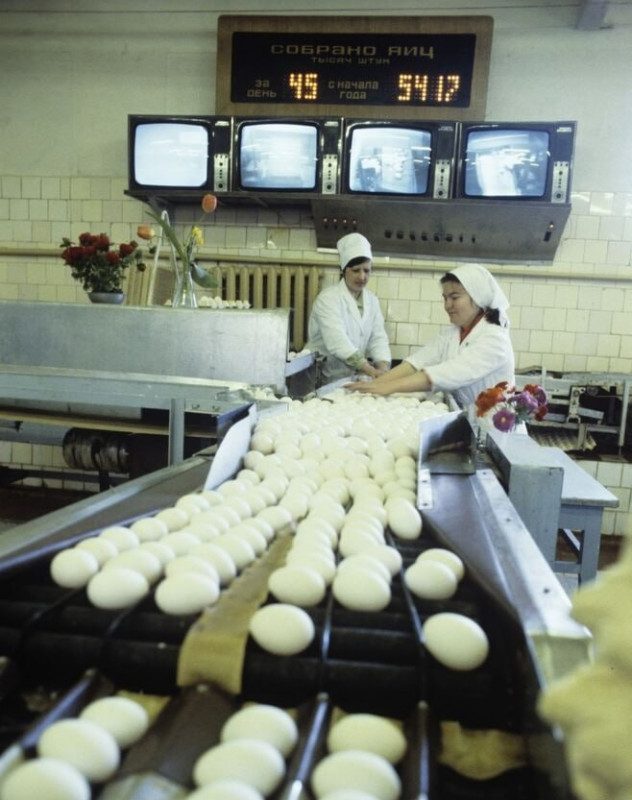 Сортировщицы А. Шиманская и Н. Луферова. Минская птицефабрика им. Крупской, 1982 год.