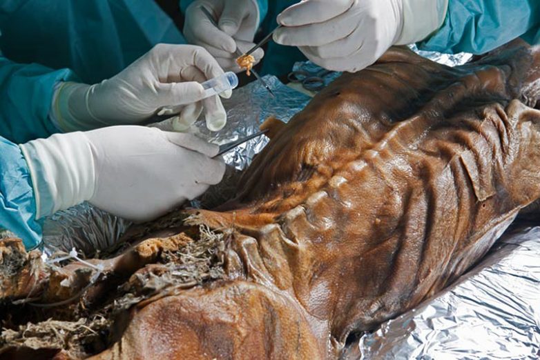 В процессе разморозки мумии ее температуру постепенно поднимали до комнатной. Талая вода была вся собрана и отправлена на бактериологический анализ.