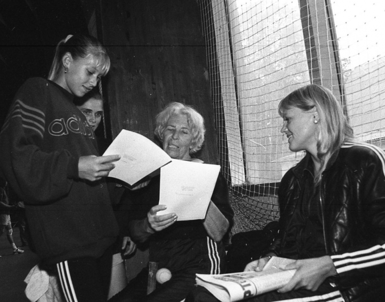 Анна Курникова со своим тренером Ларисой Преображенской и мамой Аллой, 1995 год