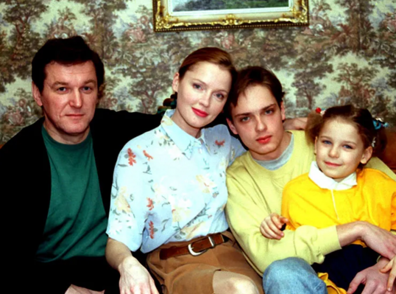Телеведущая Лариса Вербицкая с супругом Александром Дудовым и детьми, 1997 год