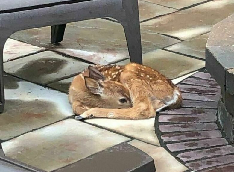 Олененок, которого мама оставила возле дома человека