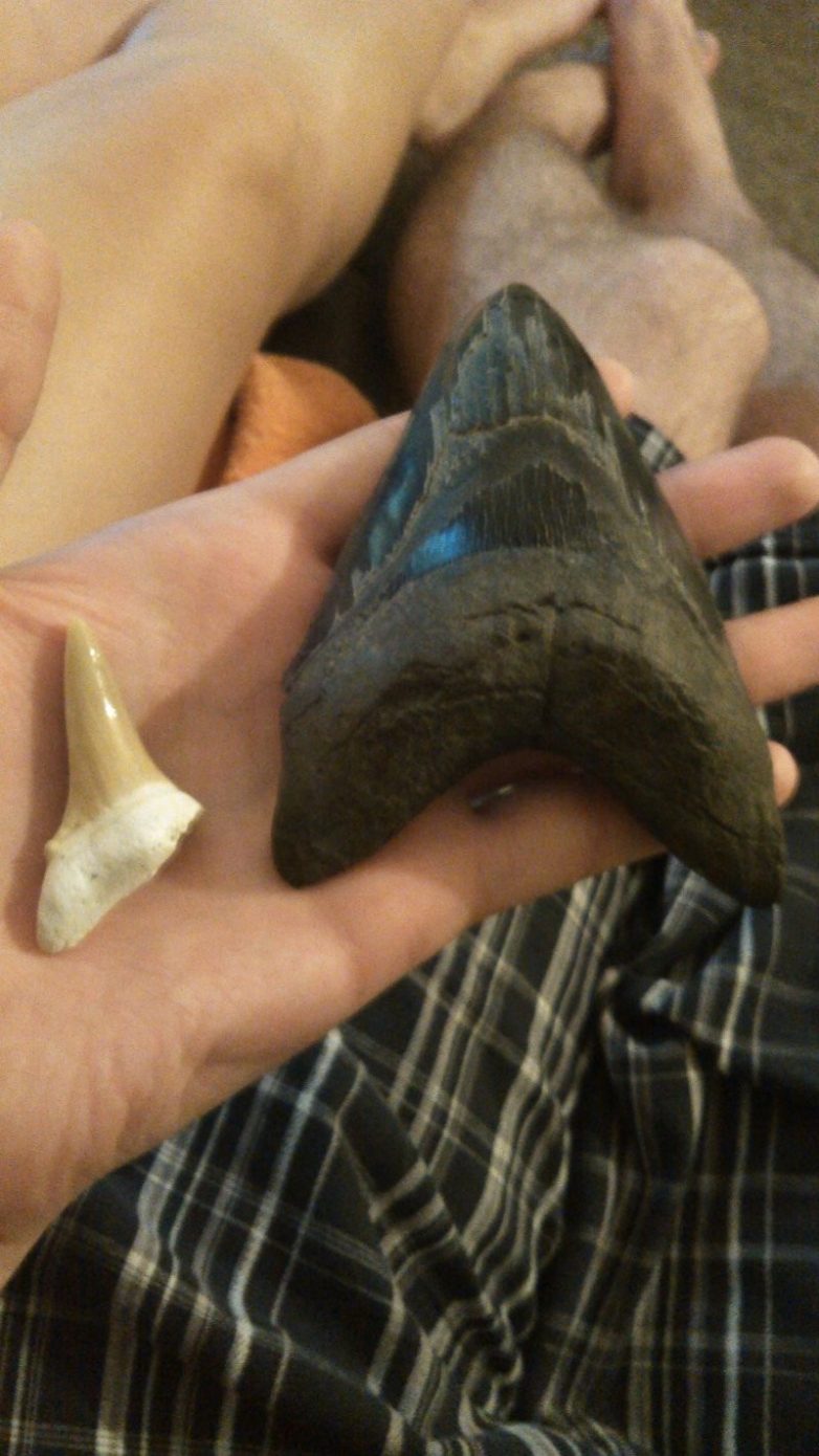 20. Зуб мегалодона по сравнению с зубом белой акулы