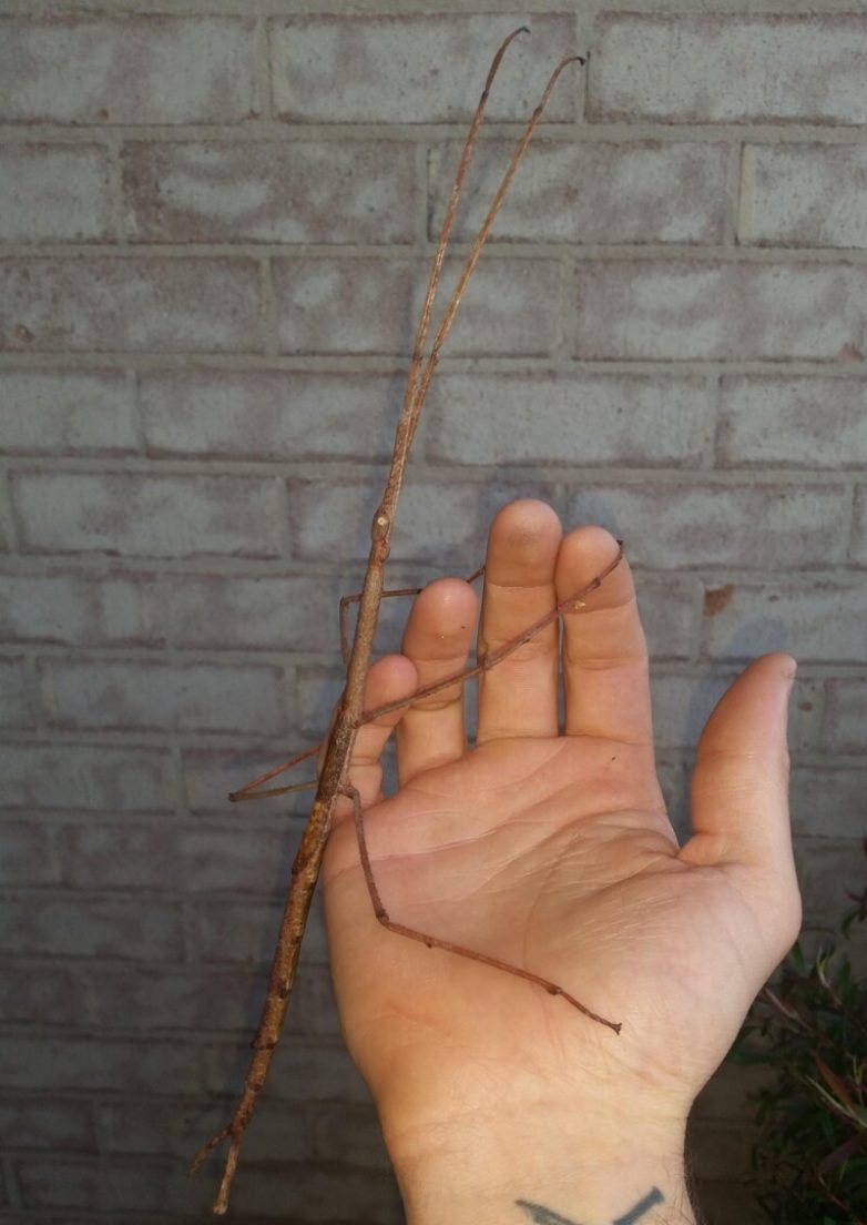 6. Обнаружил огромное насекомое — палочника рядом с домом