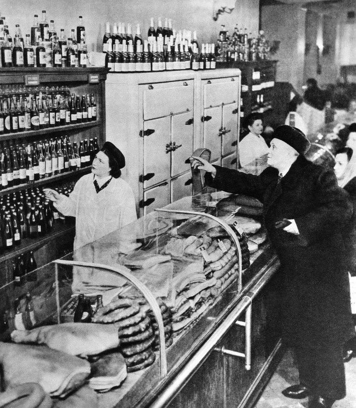 Странно, в продуктовом магазине в Ленинградском районе на окраине Москвы, 1954г. завалены прилавки, и очереди нет. А нынешние демократы утверждают обратное.