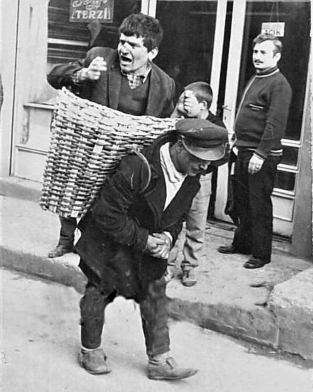 Хозяева турецких рюмочных нанимали носильщиков для доставки домой слишком пьяных постоянных клиентов, 1960-е, Стамбул.