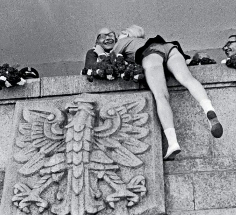 В 1960 году, первый секретарь Польской объединенной рабочей партии, Владислав Гомулка, удивился, когда молодая участница парада приблизилась, чтобы поцеловать его. Наверное, его речь вызвала у нее очень сильное впечатление!