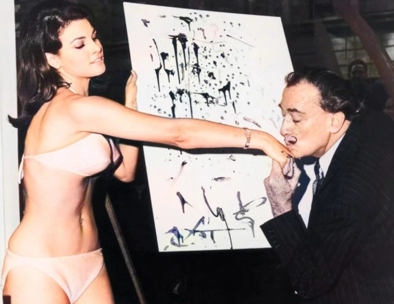 Женщины не только вдохновляли многих великих людей, но и активно участвовали в их творчестве. На одной фотографии 1950-го года видно, как Сальвадор Дали благодарит целым поцелуем женщину, которая позировала для него, а без которой он бы не смог создать свой новый шедевр.