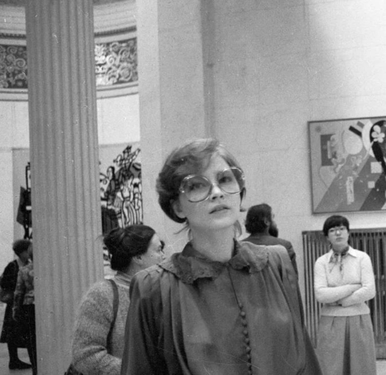 А это Татьяна Веденеева в 70-х годах решила зайти в музей. На ней очень модные очки и блузка.