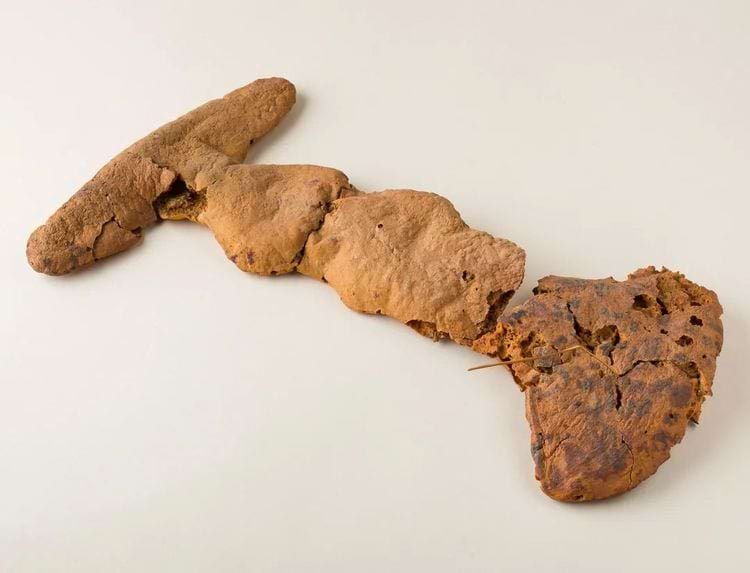 Кусок хлеба возрастом 3500 лет из гробницы Хатнефер и Рамосе. Фивы, Египет, Новое царство, 1492–1473 гг. до н. э.