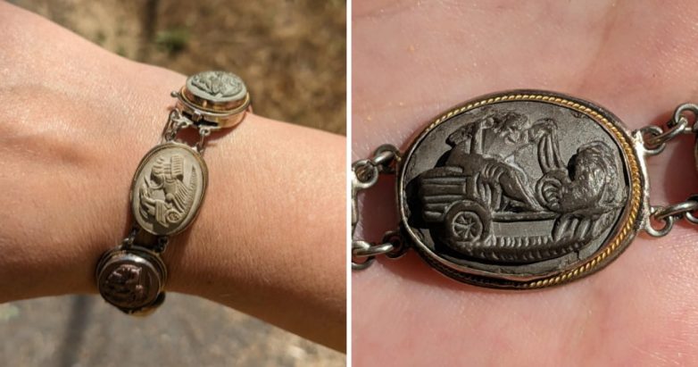 100-летний браслет с камеей из лавового камня