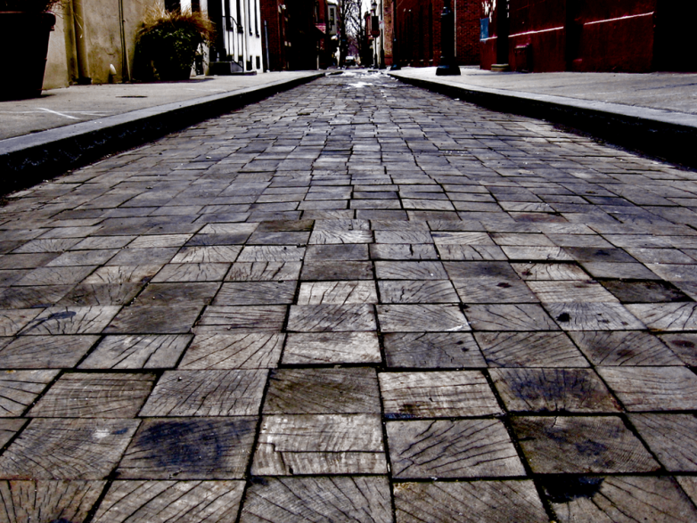 Улицы Филадельфии были вымощены деревом, чтобы заглушить шум лошадей и экипажей, проезжающих мимо больниц и домов богатых людей. Последняя оставшаяся из этих улиц – улица Камак, которая по понятным причинам закрыта для автомобилей