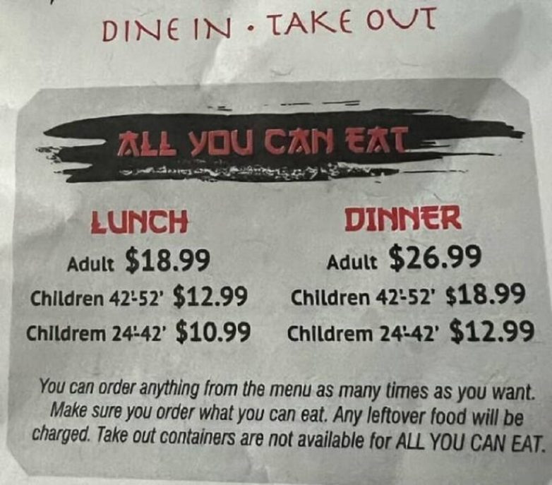 10. В этом ресторане с детей берут деньги в зависимости от роста, а не возраста