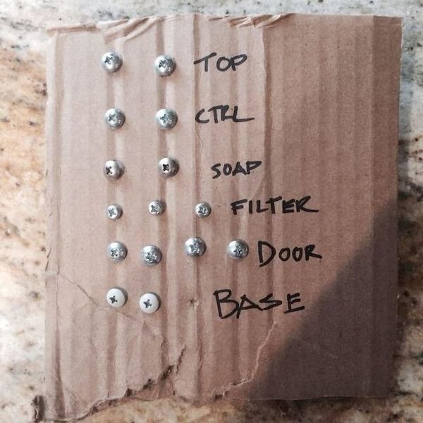 18. Когда вы разбираете что-то, вставьте винты в картонку и подпишите, что к чему относится