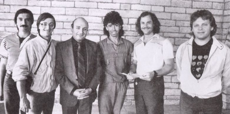 А.Тиханович (Верасы), В.Ярушин (Ариэль), М.Жванецкий, В.Леонтьев, Б.Каплун (Ариэль), Ю.Антонов. Таллин, СССР. 1981 г.