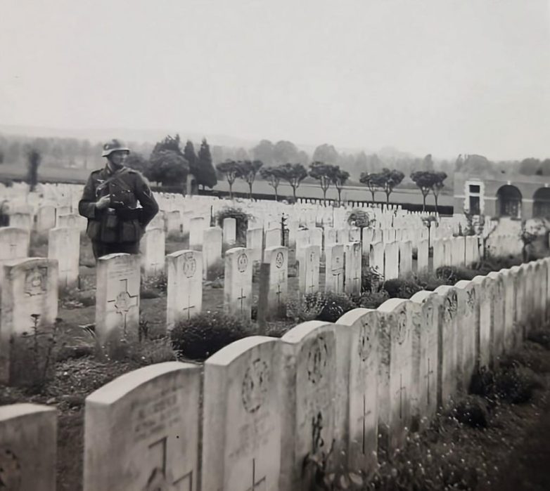 Немецкий солдат на кладбище времен Первой мировой войны на Сомме, июнь 1940 года.