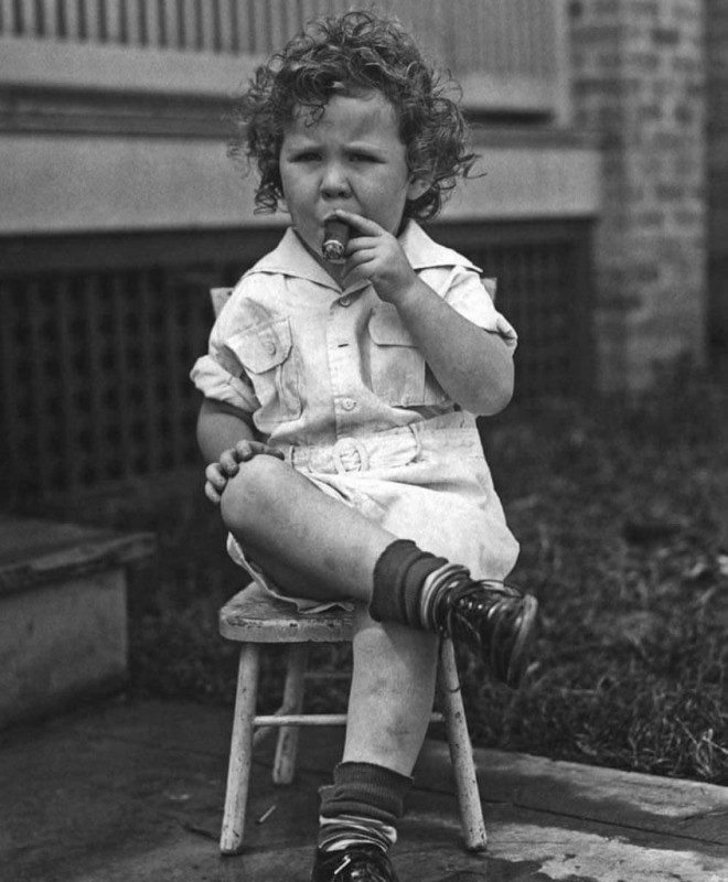 Трехлетний Роберт Куигли курит сигару, 1928 год.