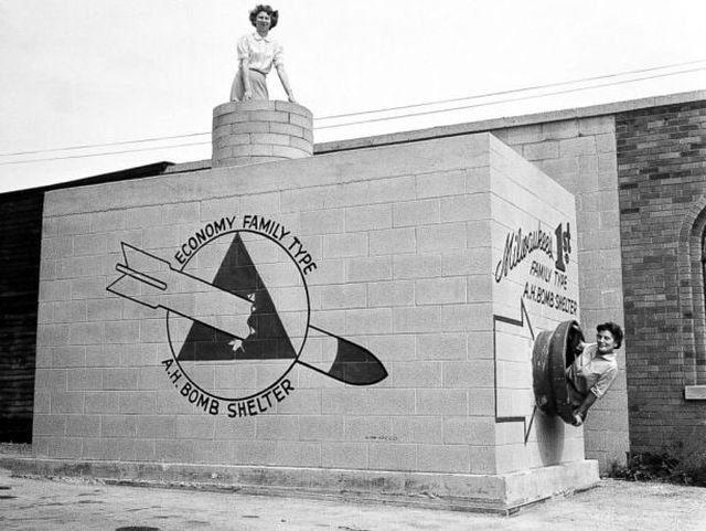 Демонстрация подземного бомбоубежища эконом-класса, которое могло вместить в себя от 8 до 12 человек, США, 1958 год. Заявлялось, что данное бомбоубежище могло выдержать падение 20-мегатонной бомбы в тротиловом эквиваленте.