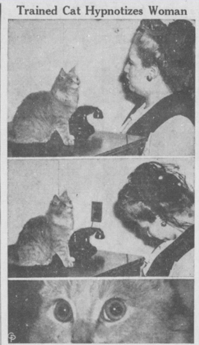 Кошка Паффи, которой приписывали введение более 300 человек в гипнотический транс своими огромными немигающими глазами, 1944 год.
