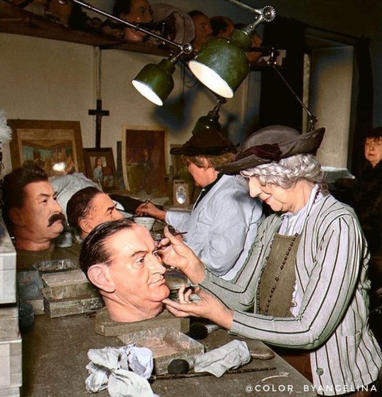 Художники, работающие над восковыми головами Мадам Тюссо в Лондоне, Англия в 1940 году.