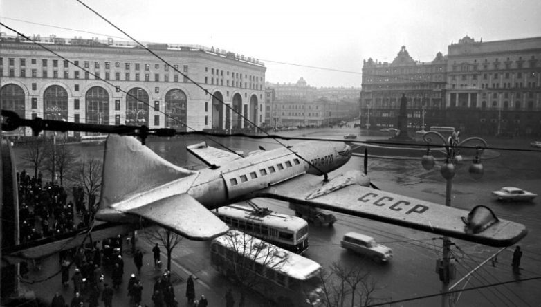Пл. Дзержинского (ныне — Лубянская площадь) в 1965 москвичей удивляли макетом самолёта Ил-12.