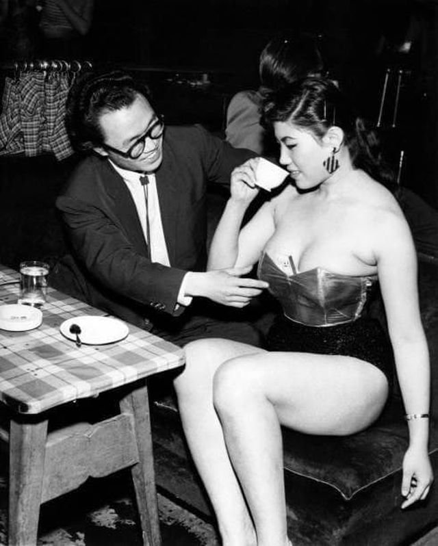 Официантка развлекает клиента, Токио, Япония, 1970-е.