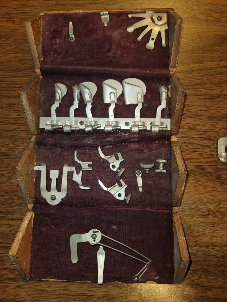 Это набор насадок для швейной машины с педалями конца XIX века.