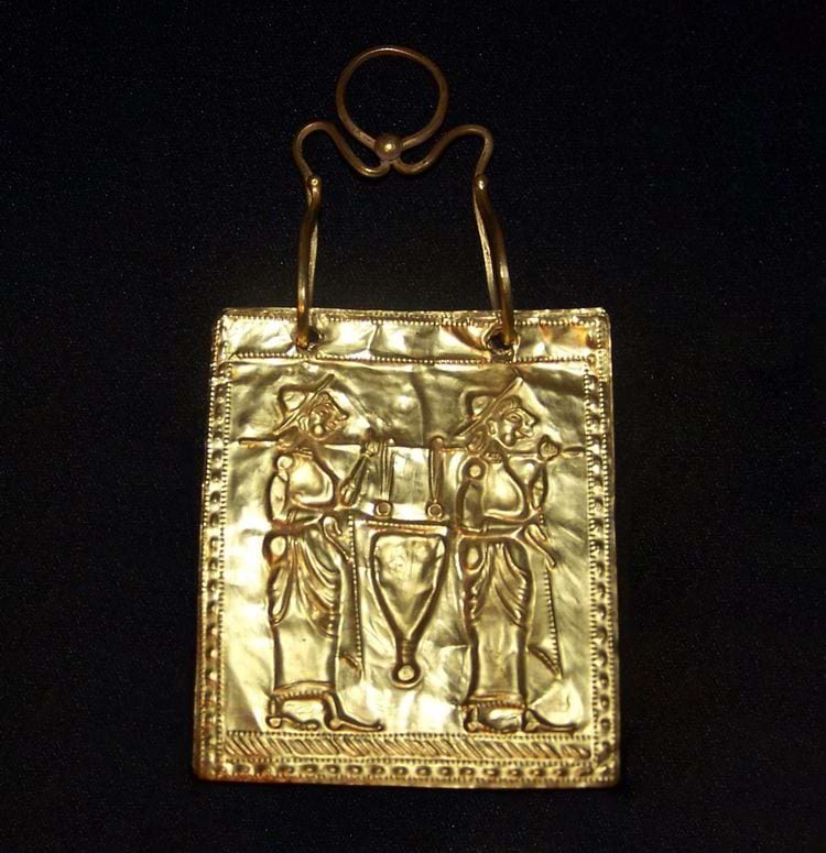 Три золотые пластины, найденные в 1964 году при раскопках святилища в древнем Пирги, Италия, датируются 500 годом до нашей эры. Учёные полагают, что когда-то они были связаны вместе, имея отверстия по краям.