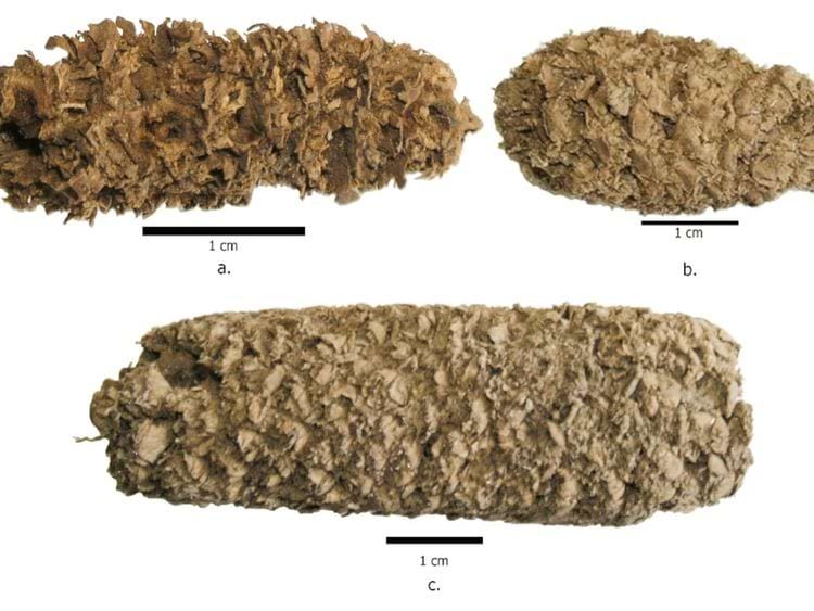 Хлеб либо был выброшен в мусорную яму, либо предназначался для религиозного приношения. Кусок хлеба был настолько похож на изображенный здесь кусок угля, что ученые сначала приняли находку за древесный уголь. Однако, когда они поместили хлеб под микроскоп, стали видны древние зерна ячменя.