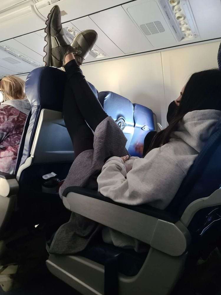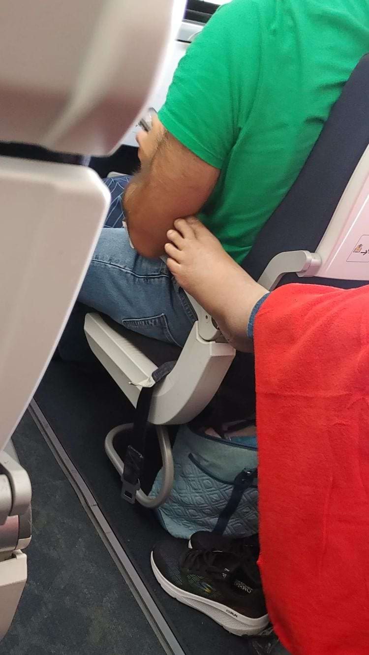 Пассажиру в зеленой футболке во время полета сделали бесплатный массаж руки
