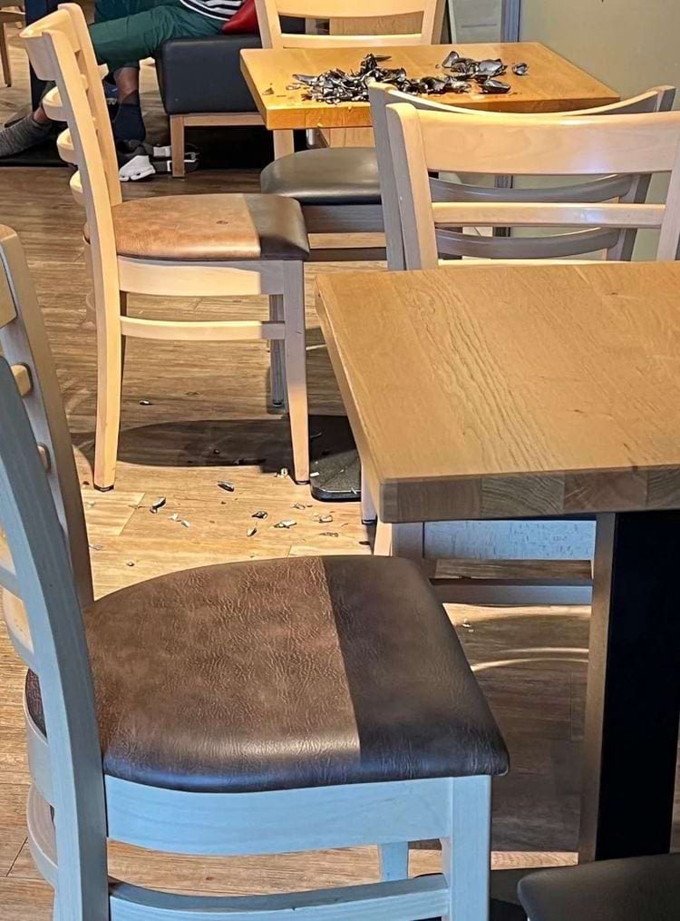 Кто-то съел пачку сырых мидий, которые купил в продуктовом магазине, а все ракушки оставил в кафе-пекарне