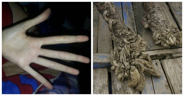 15. Верруциформная эпидермодисплазия, или синдром «человека-дерева», когда на теле образуются наросты, похожие на кору