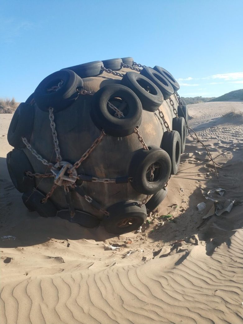 «Бампер» кранец большого корабля. Используется для предотвращения столкновения огромных кораблей с пирсом. Должно быть, его выбросило на берег во время шторма.