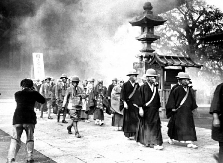 Монахи из храма Асакуса готовятся к японо-китайской войне, Япония, 1936 год.