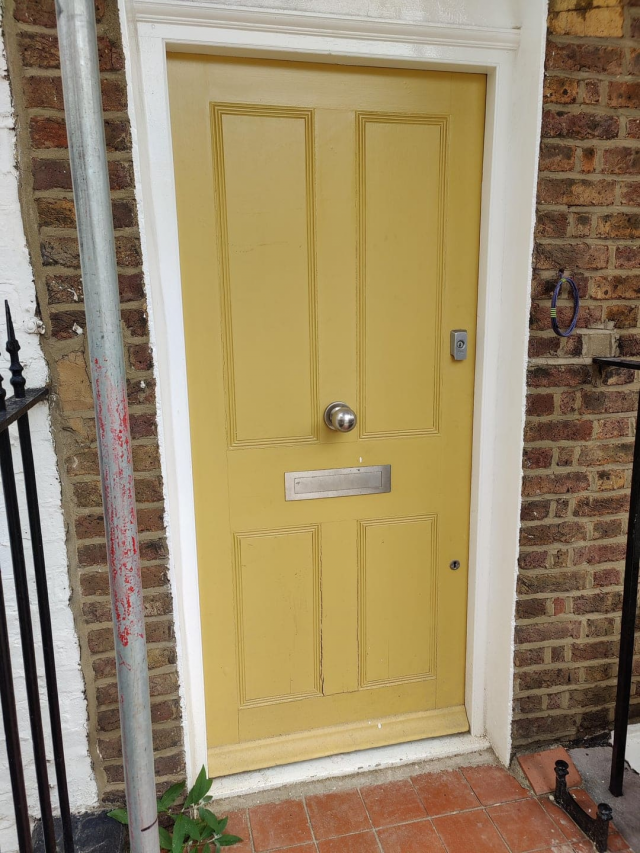 У некоторых дверей в Лондоне есть ручки по центру. Замок удерживает дверь на месте, а ручка предназначена только для того, чтобы закрыть её.