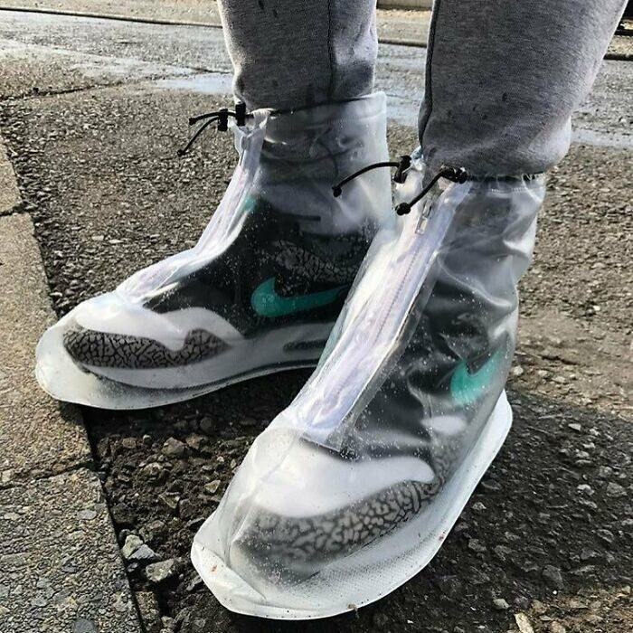 Чехлы на обувь — крайне удобная вещь! Можно и в грязь в кроссовках ходить, и если дождь пойдёт — одел и норм. Всегда в сумочке силиконовая пара.