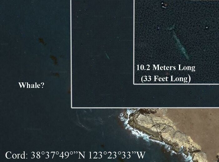 8. «Целый час изучал западное побережье и наконец-то нашел кита в океане! (10,2 метра в длину)»