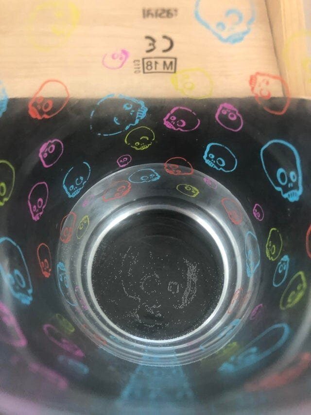 11. Пузырьки выстроились в форме черепа на дне стакана с черепами