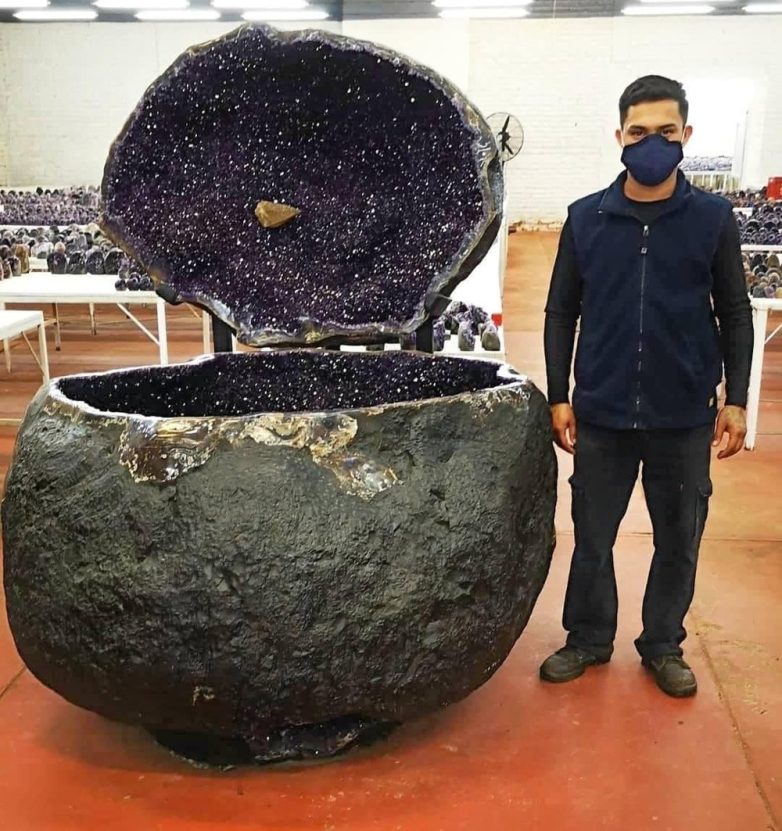 Огромная аметистовая жеода в сравнении с человеком