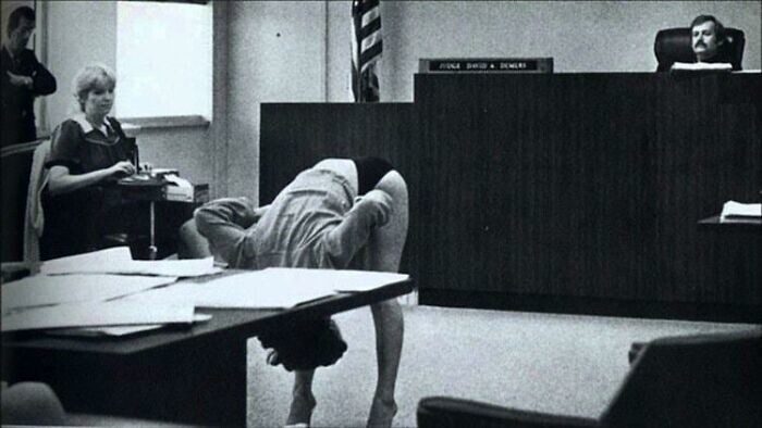 Стриптизёрша из Флориды доказывает судье, что её трусы достаточно велики и прикрывают интимные места, 1983 год