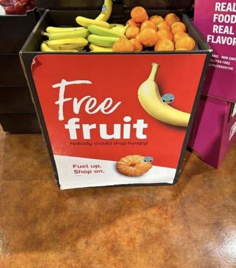 10. Бесплатные фрукты в супермаркете. «Никто не должен ходить по магазину голодным!»