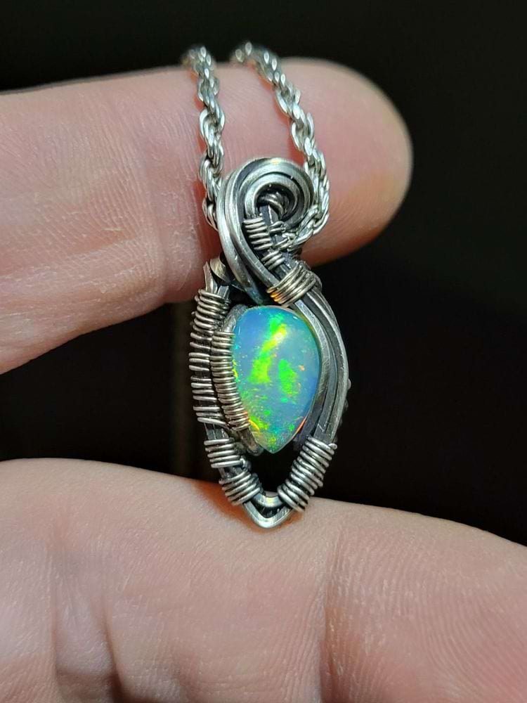 «Подвеска с опалом из серебра и белого золота 14 карат, сделанная мной»