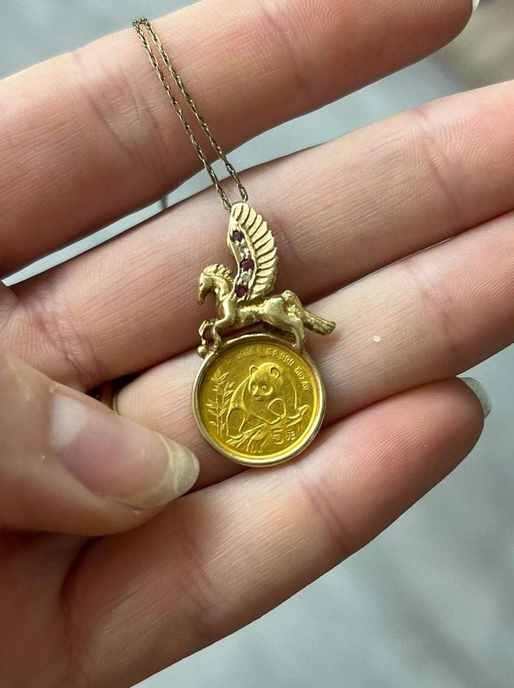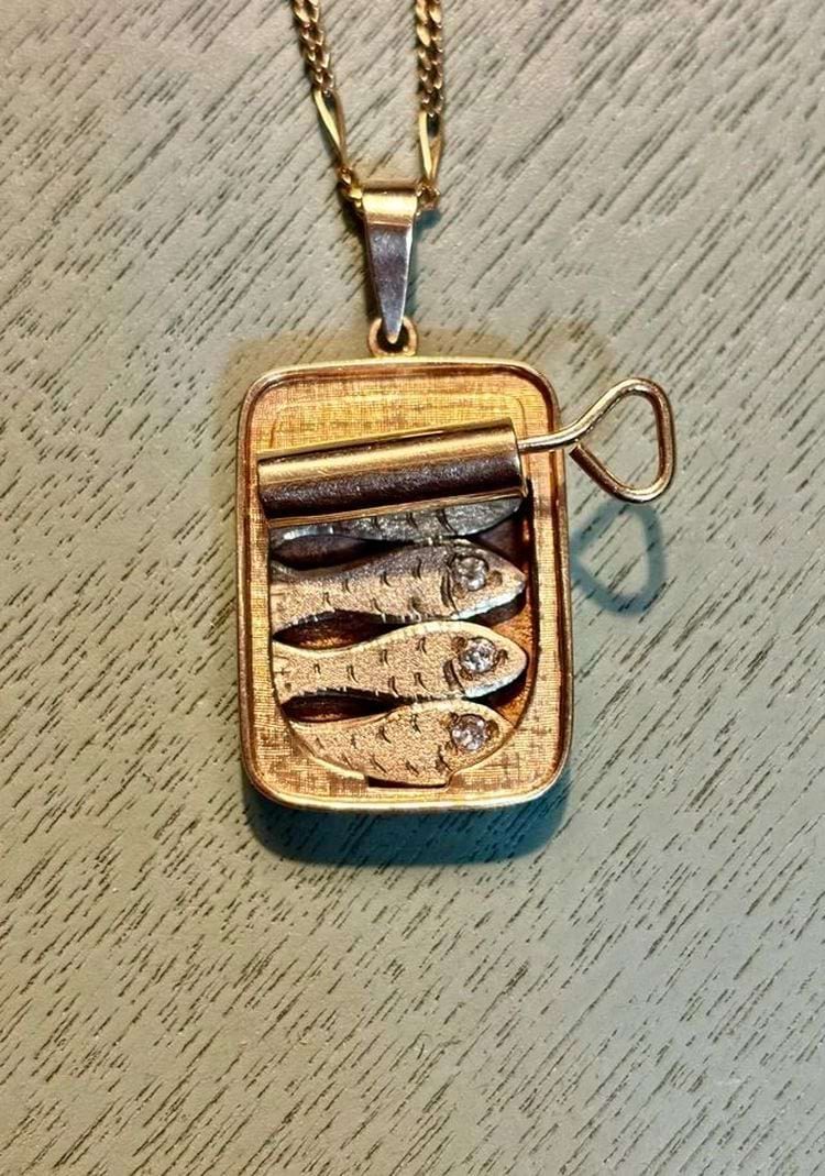 «Небольшое ожерелье, которое я сделала из чистого 9-каратного золота, смолы, чернил и светящегося пигмента»