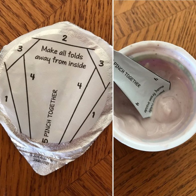 Эту крышку от йогурта можно сложить в маленькую ложку