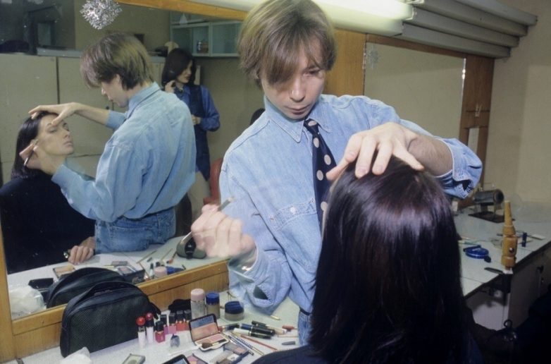 Сергей Зверев делает макияж фотомодели в центре красоты «Велла Долорес». Москва, 1994 год.