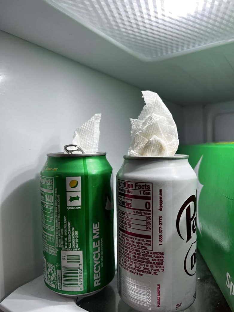 Она думает, что таким образом сохраняет газированность напитка. В любой момент времени в холодильнике есть 3/4 газировки, которую она бросила. Сейчас дети тоже начинают это делать. Я пытался объяснить, что это не поможет, но меня никто не слушает.