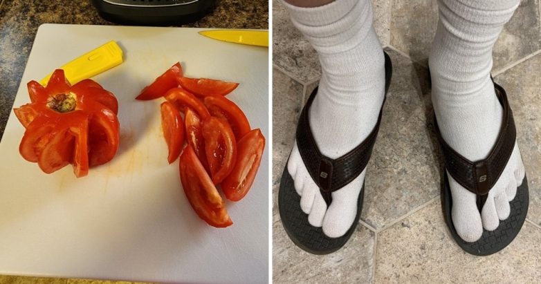 «Странная нарезка томатов от моей жены»